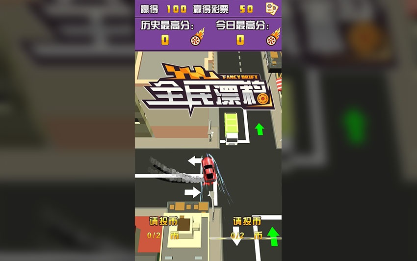 《全民漂移》是閃撲動漫受托制作的一款街機游戲。在該款游戲中,玩家通過按鍵操縱在城市里疾馳的賽車。每當去到彎道處時,玩家需要抓住時機進行漂移。若漂移失敗則玩家損失生命值。通過漂移的完美程度,玩家會獲得不同評價從而得到不一樣的分數。