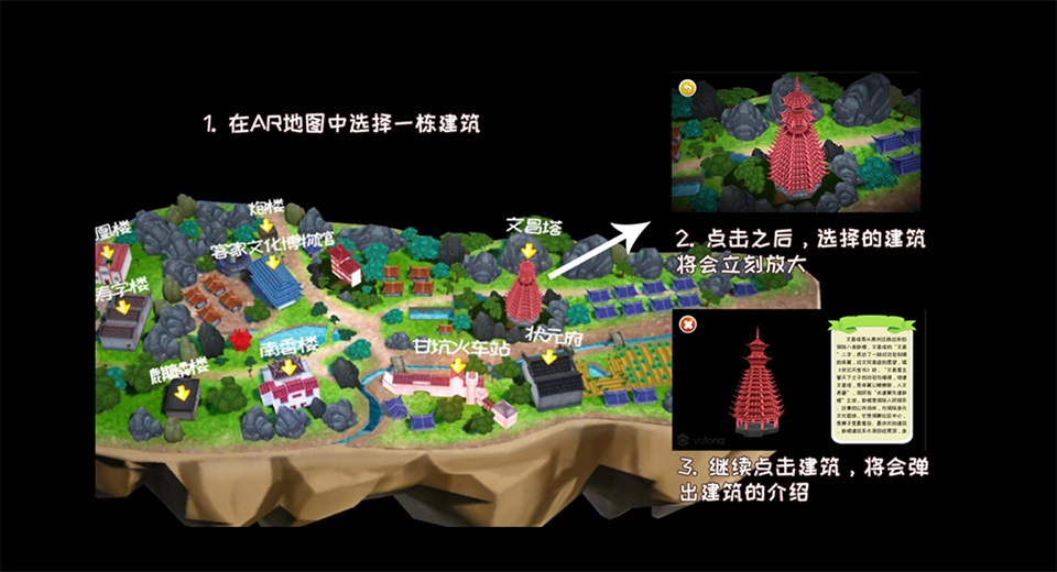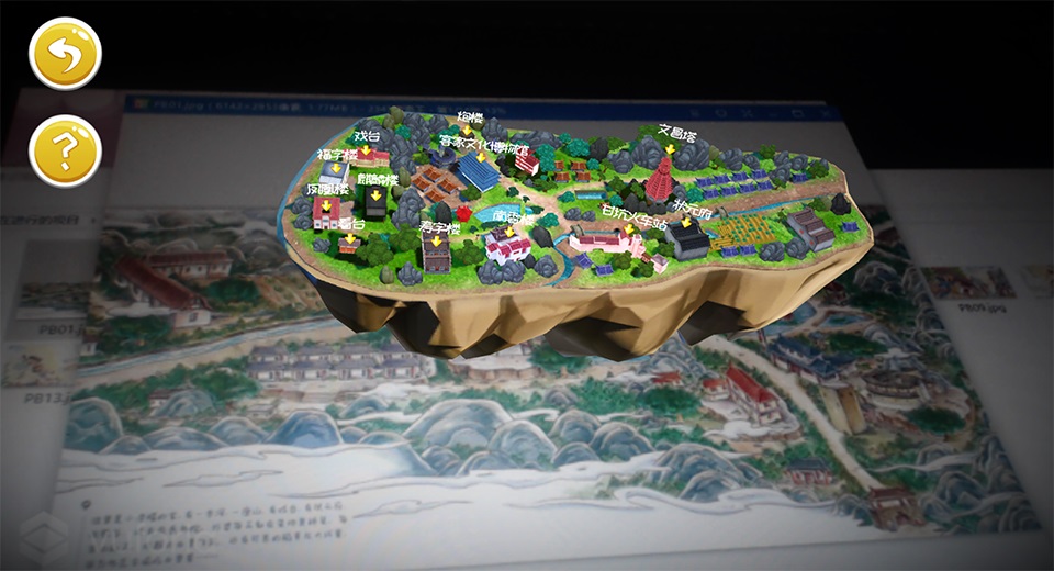 小涼帽繪本是以IP“小涼帽”為主題,利用AR掃描小涼帽繪本中的任意頁觸發不同的功能,如掃描封面出現可縮放的三維甘坑小鎮模型,可以對小鎮進行旋轉縮放等操作。掃描任意內頁可以在甘坑小鎮里面閑逛游玩,還能觸發不同的小游戲。還能用色彩筆進行涂色游戲,玩家通過圖畫涼帽姐妹的線稿圖,使用手機掃描便能呈現玩家填上色后的涼帽姐妹。