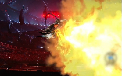 整個制作周期耗時一個半月,從龍的模型、形態、毛發、眼神、龍角、龍爪、鱗片、骨骼、尾部、甚至龍身的燈光,巨龍破地屏而出的巖石粒子飛濺、每一個細節,都在反復推敲、雕琢