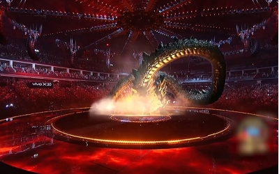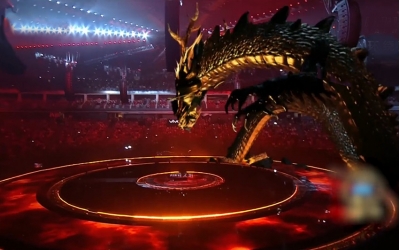 前后共測試六個版本,調試了三種不同的燈光效果 ,采用大型超級計算機群組進行聯合渲染。通常在影視動畫中龍身模型的制作為20-25節,而我們單龍身就做了60節,巨龍動作的調試也不斷追求細節,力求精益求精,可謂電影級AR制作。